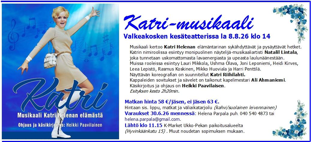 Lippuvaraukset ke 11.2.26 mennessä: Helena Parpala puh. 040 540 4873 tai helena.parpala@gmail.com